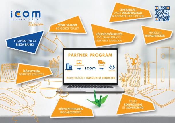Az I-COM Irodaellátás Kft. örömmel jelenti be, hogy megújult az ügyfeleknek létrehozott Partner Program webes felülete. A program célja a beszerzések és költségek egyszerű, gyors és átlátható tervezése egy interaktív piactéren, amellyel akár 20%-os megtakarítás is elérhető az irodaellátási költségeken.