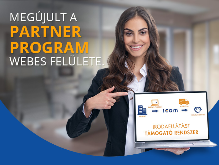 Az I-COM Irodaellátás Kft. örömmel jelenti be, hogy megújult az ügyfeleknek létrehozott Partner Program webes felülete. A program célja a beszerzések és költségek egyszerű, gyors és átlátható tervezése egy interaktív piactéren, amellyel akár 20%-os megtakarítás is elérhető az irodaellátási költségeken.